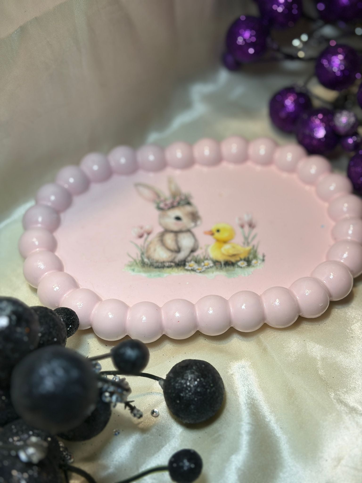 Easter Oval Beaded Tray – Bunny & Duckling
