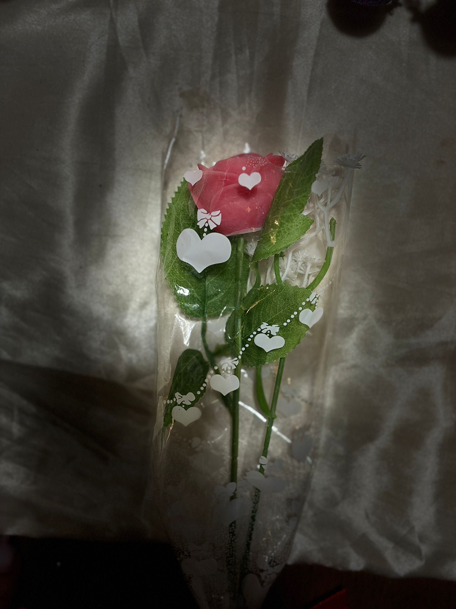 - Beautifully wrapped in transparent cellophane with white heart details